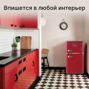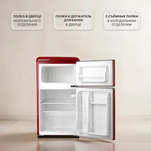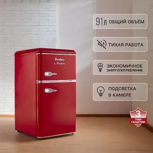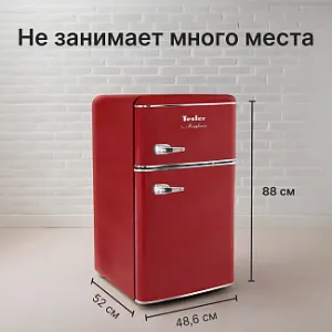 Холодильник Tesler RT-97 сочетает в себе надежное охлаждение, элегантность и функциональность. Выполненный в ретро-стиле, он придаёт особый шарм пространству вокруг, что делает его идеальным дополнением к кухне. Благодаря небольшим размерам он может быть установлен даже в ультракомпактных пространствах.