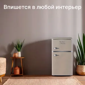 Холодильник Tesler RT-97 сочетает в себе надежное охлаждение, элегантность и функциональность. Выполненный в ретро-стиле, он придаёт особый шарм пространству вокруг, что делает его идеальным дополнением к кухне. Благодаря небольшим размерам он может быть установлен даже в ультракомпактных пространствах.