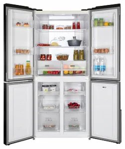 4-х дверный холодильник имеет единое пространство верхних полок холодильной камеры, чтобы удобно было размещать габаритные кастрюли и контейнеры. Прочные полки из закаленного стекла можно регулировать по высоте, а ящики в холодильной камере предназначены для хранения овощей и фруктов и оснащены влажной зоной свежести и сухой.