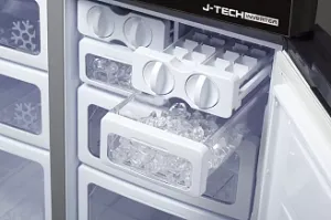 Уникальный инверторный компрессор J-Tech Inverter постоянно подстраивается под условия внутри и снаружи холодильника и подбирает нужный режим – например, если в холодильнике мало продуктов или дверь холодильника открыта. Так регулируется степень охлаждения и разумно расходуется электроэнергия. Скорость его вращения имеет целых 36 ступеней и меняется плавно, что экономит электроэнергию. Благодаря технологии J-Tech Inverter холодильники Sharp позволяют сохранять на 20% больше электроэнергии, чем холодильники с обычным инвертором.