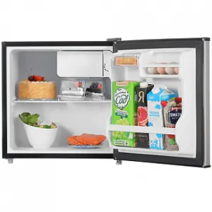 Чтобы осуществить плановое устранение наледи, достаточно отключить холодильник компактный DEXP TF050D от сети питания. Внутри прибора расположились металлические полки и боковые отделения, которые просто незаменимы для размещения множества любимых деликатесов. Дверца вашего ассистента открывается в правую сторону.