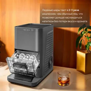 - Идеально круглые и прозрачные шарики льда не трескаются, не крошатся и подходят для авторских коктейлей с оригинальной подачей.