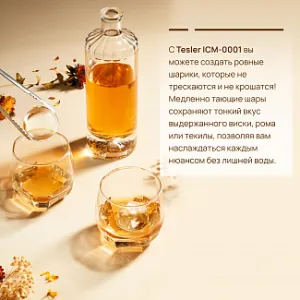 С компрессорным льдогенератором Tesler ICM-0001 легко приготовить идеально прозрачный шариковый лёд для охлаждения напитков. В отличие от обычного льда, эти шары дольше сохраняют вкус напитка не разбавляя его лишней водой, за счет того, что тают в 2-3 раза медленнее. Это отличное решение как для домашних посиделок, так и для подачи профессиональных и авторских коктейлей.