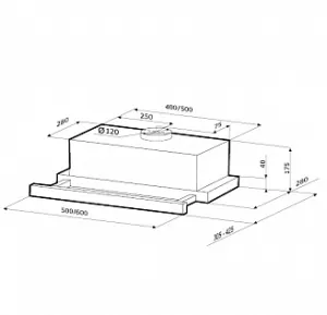 Встраиваемая кухонная вытяжка Kamilla 1M 500 inox с выдвижным экраном. Данная модель предназначена для установки в подвесной кухонный шкаф. Вытяжка способна работать в дух режимах: отвод и рециркуляция воздуха. Максимальная производительность вытяжки в режиме отвода воздуха составляет 390 куб. м/ч. Минимальный уровень шума 46 Дб. Выдвижная панель вытяжки используется для увеличения площади забора воздуха, а также с ее помощью происходит включение / выключение вытяжки. Для освещение рабочей поверхности в вытяжке присутствует лампа накаливания мощностью 40 Вт. Жировой фильтр вытяжки из анодированного алюминия пригоден для мытья в посудомоечной машине.