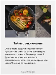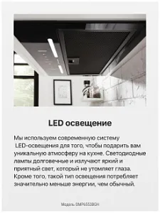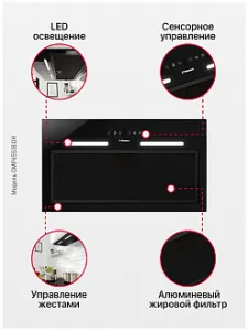 Инновационная технология управления жестами во встраиваемой вытяжке OMP6553BGH предотвращает появления загрязнений от пальцев на глянцевой поверхности, а высокая производительность 500 кубометров в час позволяет тщательно и быстро очистить воздух в кухнях большой площади. Если настраивать вытяжку жестами не очень привычно, то можно воспользоваться сенсорным управление для изменения мощности и включения яркой LED подсветки.