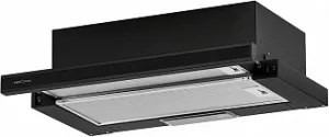 Производительность вытяжки KRONAsteel KAMILLA 600 Glass соответствует 1066 м³/ч, что говорит об эффективной работе прибора: он справляется быстро с выведением воздуха, загрязненного парами, гарью и содержит запахи, от которых хочется избавиться. Устройство поддерживает три скорости, используя панель с кнопками для управления настройками. Кнопки помогут быстро отрегулировать интенсивность работы прибора, а функция "Slide Stop" позволяет ей запоминать скорость, которую вы выбирали в последний раз. Ширина прибора с поддержкой выдвижной конструкции равна 60 см.