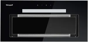 Полностью встраиваемая вытяжка от Weissgauff, выражающая в себе наш главный принцип "Качество, доступное каждому", оснащена чувствительным сенсорным управлением и выполнена в дизайне врезного блока с панелью в закаленном стекле черного цвета!