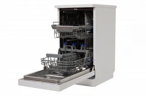 Посудомоечная машина способна эффективно очистить от загрязнений за один цикл до 9 комплектов кухонной посуды. Модели в процессе эксплуатации характеризуется низким уровнем шума, поэтому комфортна в использовании даже в ночное время. Благодаря регулируемой высоте корзины в рабочую камеру устройства удобно загружать посуду нестандартного размера.