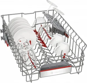 Система регулировки по высоте Rackmatic поможет оптимизировать пространство посудомоечной машины под ваши индивидуальные потребности. Даже полностью загруженный верхний короб можно с легкостью переставлять по высоте на 3-х уровнях шагом до 5 см, нажав на рычажки, расположенные по бокам короба.
