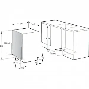 Встраиваемая посудомоечная машина 45 см Gorenje GV532E10W вмещает до девяти комплектов посуды. Узкая модель обладает шириной 44,8 см, высота и глубина стандартные и составляют 81,5 см и 55 см соответственно. Установка производится в нишу размерами 82x56x45 см.