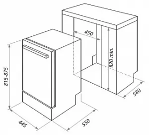 Полновстраиваемая. Индикация окончания мойки "Луч на полу". Защита от протечек. Выдвижной лоток для столовых приборов. Возможность использования моющих средств "3в1". Отсрочка старта от 1 до 24 часов и интервалом в один час.