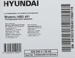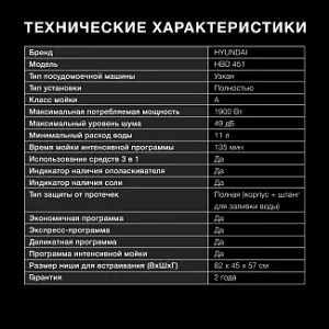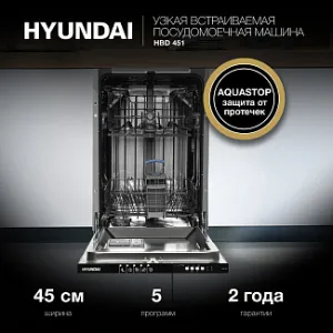 Hyundai HBD 451 – это современная посудомоечная машина с набором полезных дополнительных функций.