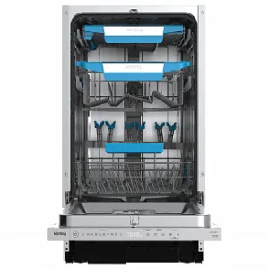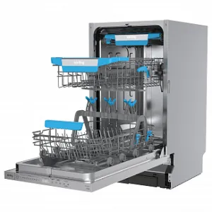 Посудомоечная машина Korting оснащена дополнительным, третьим, лотком для столовых приборов. Это значит, что корзина, которая в обычных моделях служит для размещения ложек и вилок, не занимает места в посудомойке. В специальном лотке приборы лучше отмываются, их удобнее раскладывать и вынимать.