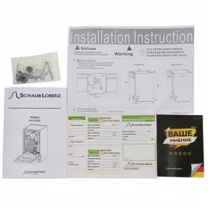 Комплектация: Лоток для столовых приборов Сливной шланг Пластиковый держатель для сливного шланга Воронка для засыпки соли Руководство по эксплуатации Гарантийный талон