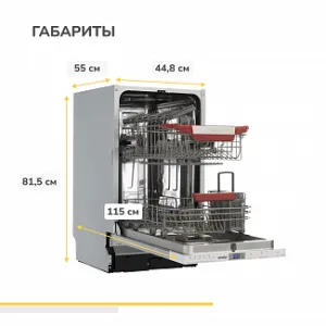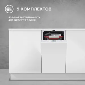 Модель оснащена верхним разбрызгивателем, регулировкой короба по высоте, имеет 6 программ мойки. Регулировка короба позволяет свободно размещать посуду разного размера. Также есть возможность использовать половинную загрузку. Это дает возможность запускать мойку при небольшом количестве предметов, снижая при этом траты на электроэнергию и воду. Модель с цифровым дисплеем и информативными индикаторами, конденсационным типом сушки. Разрешается использовать средства 3 в 1. Это делает применение посудомойки еще более экономичным и удобным. За безопасный режим работы машины отвечает наличие дополнительных функций: автоматического отключения и защиты от перелива воды в камере. Посудомоечная машина впишется как в классический, так и в современный интерьер.