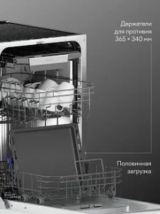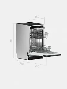 Tuvio DB43EB6BS1 — это посудомоечная машина шириной 45 см. Подходит как для просторной, так и для небольшой кухни.