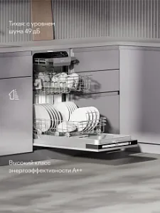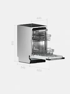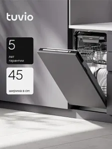 Tuvio DB43ET8LS1 — это посудомоечная машина шириной 45 см. Подходит как для просторной, так и для небольшой кухни.