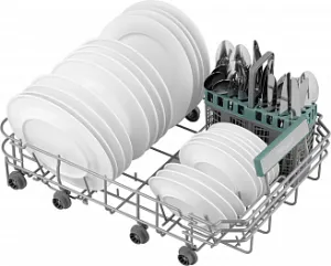 - Дополнительная полка для столовых приборов, позволяет разместить отдельно от остальной посуды в верхнем лотке доплнительно ложки, вилки и ножи, обеспечивая при этом их наилучшее мытьё!