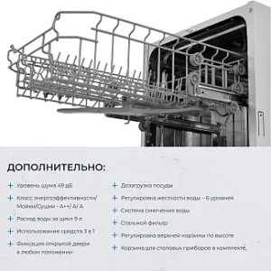 Регулировка подачи ополаскивателя – 6 уровней