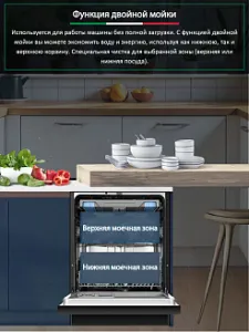 Функционал посудомоечной машины: Половинная загрузка, Мытье в верхнем коробе