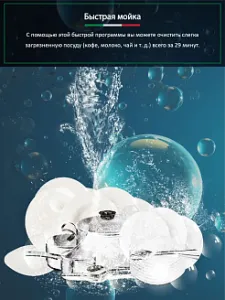 Программы мойки: 60 минут, 90 минут, БИО, Быстрая, Интенсивная, Ежедневная, Комбинированная