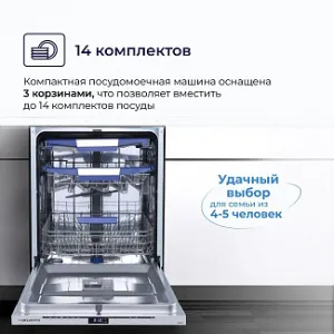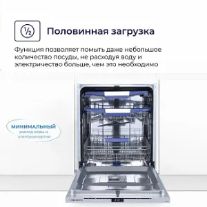 Необязательно загружать камеру посудомойки полностью, чтобы запустить программу. Достаточно загрузить небольшое количество посуды после завтрака или легкого ужина, выбрать необходимую программу и активировать специальный режим половинной загрузки, при котором будут снижены ресурсы потребления воды и электроэнергии.