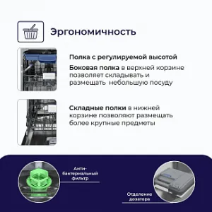 Процесс мойки посуды можно отложить на заданное время, например, не дожидаясь момента действия экономичного тарифа электроэнергии, установить таймер на включение прибора в ночное время.