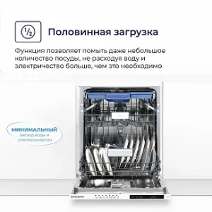 Необязательно загружать камеру посудомойки полностью, чтобы запустить программу. Достаточно загрузить небольшое количество посуды после завтрака или легкого ужина, выбрать необходимую программу и активировать специальный режим половинной загрузки, при котором будут снижены ресурсы потребления воды и электроэнергии.