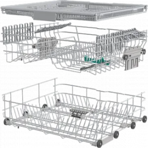Корзины имеют цветные складные держатели и регулируемую компоновку, чтобы было удобно загружать посуду. Верхняя корзина легко переставляется по высоте между двумя уровнями, и это позволяет поместить в машину даже самые большие кастрюли и тарелки. Держатели для тарелок в нижней корзине складываются, обеспечивая больше места для большой посуды. Для столовых приборов предназначен специальный лоток, где предметы располагаются отдельно, поэтому не царапают другую посуду и полностью высыхают. Разработчики уделили внимание каждой детали, чтобы максимально облегчить мытье посуды.