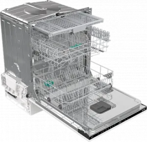 В посудомоечных машинах Gorenje верхнюю корзину можно легко переставлять между двумя уровнями. Удобное решение для мытья больших кастрюль, сковородок, мисок, тарелок и бокалов.