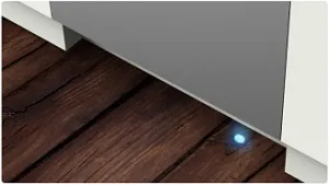 Трехцветная индикация работы встраиваемой посудомоечной машины на полу: синий цвет — мытье, зеленый — ополаскивание, красный — сушка. В любой момент ясно, на какой стадии процесс.