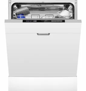 Электронное управление с дисплеем расположено в торце загрузочной дверцы. Функционал данной модели позволяет вам выбрать программу мойки, включить половинную загрузку, выставить время отсрочки старта (1-24 часов).