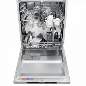 В посудомоечную машину помещается много посуды. Можно накопить её в течение дня или помыть сразу всё после семейного торжества или вечеринки с друзьями. Вместимость — до 12 комплектов посуды.