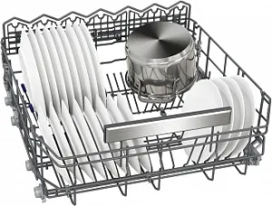 Вместительный выдвижной ящик VarioDrawer позволяет обойтись без отдельной корзины для столовых приборов, обеспечивая оптимальное использование пространства - теперь есть возможность разметить до 14 комплектов посуды (в моделях шириной 45 см - до 10 комплектов)