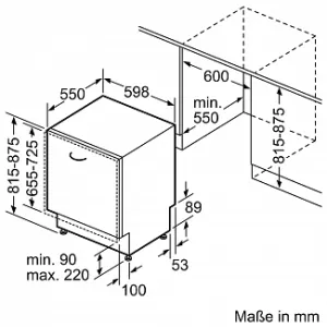 Минимальная высота ниши для встраивания: 815 мм