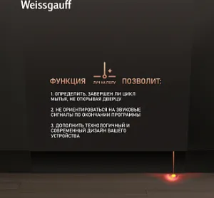 - Функция "Луч на полу", позволяющая определить, завершила ли посудомойка свой цикл работы, не открывая при этом дверцу
