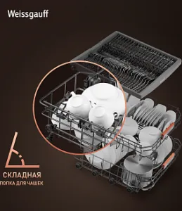 - До 14 комплектов посуды одновременно вы можете расположить в данной посудомоечной машине, благодаря современным продуманным и эргономичным корзинам, которыми Weissgauff оснастили эту модель!