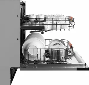 - Выбор уровня мойки является доработанной функцией половинной загрузки с возможностью выбора верхней или нижней части камеры, благодаря которой вы сможете помыть даже самое небольшое количество посуды, не расходуя воду и электричество больше, чем это необходимо.