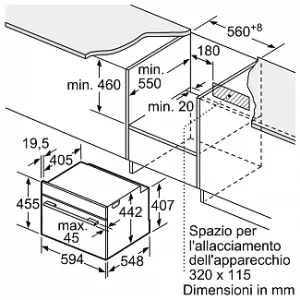 Размеры ниши (ВхШхГ): 450 мм - 455 мм x 560 мм - 568 мм x 550 мм.
