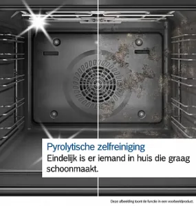 Пиролиз является наиболее эффективной системой очистки духового шкафа и принадлежностей без использования химических чистящих средств. В зависимости от степени загрязнения можно выбрать один из трех режимов очистки, когда духовка нагревается до ~480 °С. Все загрязнения от приготовления блюд в том числе возможная среда для развития опасных бактерий - сжигаются, остается лишь немного пепла, который легко удалить влажной тряпкой. Таким образом духовой шкаф легко содержать в идеальном состоянии.