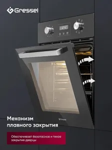 - Доводчик дверцы: Плавное и тихое закрытие дверцы защищает от случайных ударов, продлевая срок службы духовки.