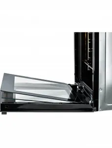 Особенности духовки, плиты: Вентилятор охлаждения, Дисплей, Полностью стеклянная внутренняя дверца, Хромированные направляющие