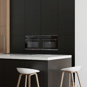 Сочетание стекла, стали и прямых, горизонтальных линий, используемых в духовых шкафах современного дизайна объединяет внешний вид кухонной мебели и бытовой техники, создавая полноценное решение в стиле хай-тек.