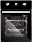 Духовой шкаф с общим объемом 50 л и мощностью 2 кВт, имеет 6 режимов нагрева и механический таймер. Таймер настраивается до 120 минут и контролирует работу духовки на протяжении установленного времени. Духовой шкаф отключается и издает звуковой сигнал по истечению заданного времени готовки.