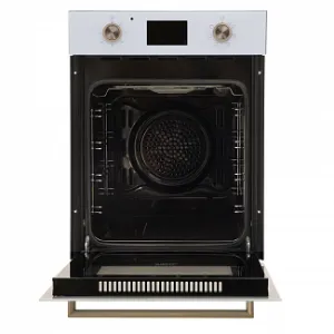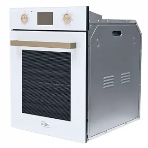 Электрический духовой шкаф Oasis D-45SW6 белого цвета предназначен для установки в нишу размером 59х60х56,5 см. При объеме 52 л габариты модели составляют 59,6х45х56 см, а вес — 22 кг. Устройство потребляет 1400 Вт и относится к приборам А-класса энергоэффективности. На корпусе находится цифровой дисплей, сенсорная панель, индикация и таймер. Всего предлагается шесть режимов работы, включая конвекцию. Максимальная доступная температура — 250°С. В качестве дополнительной опции возможны телескопические направляющие.