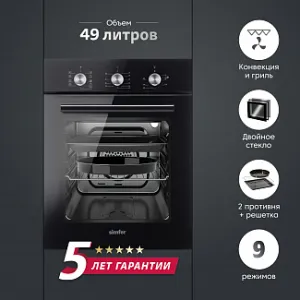 Электрический духовой шкаф Simfer B4EB19070 - современная техника для кухни, которая благодаря многообразию режимов, позволяет готовить не только повседневную пищу, но и изысканные блюда. Она снабжена функцией конвекции, которая равномерно распределяя теплый воздух, пропекает блюдо со всех сторон. С помощью удобных поворотных ручек легко выбрать необходимый режим приготовления для любого рецепта. Встроенная подсветка позволит наблюдать за процессом, не открывая при этом дверцу шкафа, а значит сохраняя тепло внутри. Таймер подскажет, когда блюдо будет готово, а двойное стекло защитит от ожога при случайном прикосновении к дверце шкафа. Эта простая в управлении, стильная и современная техника прекрасно впишется как в классический интерьер, так и в самый современный.