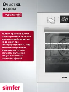 Данный метод очистки позволяет удалять жировые отложения, не используя при этом сильные химические вещества, которые могут повредить внутреннюю поверхность духовки. Устанавливаете режим, наливаете воду, которая медленно испаряясь, смягчает загрязнение и после протираете мягкой тряпкой.