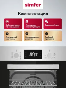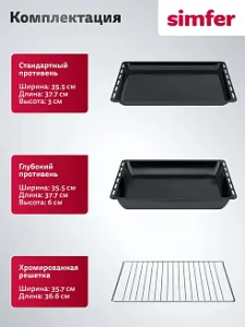 Комплектация: стандартный + глубокий противень с антипригарным покрытием, хромированная решётка