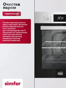 Данный метод очистки позволяет удалять жировые отложения, не используя при этом сильные химические вещества, которые могут повредить внутреннюю поверхность духовки. Устанавливаете режим, наливаете воду, которая медленно испаряясь, смягчает загрязнение и после протираете мягкой тряпкой.