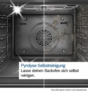 Пиролиз является наиболее эффективной системой очистки духового шкафа и принадлежностей без использования химических чистящих средств. В зависимости от степени загрязнения можно выбрать один из трех режимов очистки, когда духовка нагревается до ~480 °С. Все загрязнения от приготовления блюд в том числе возможная среда для развития опасных бактерий - сжигаются, остается лишь немного пепла, который легко удалить влажной тряпкой. Таким образом духовой шкаф легко содержать в идеальном состоянии.